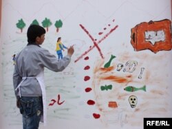 "نن چې موږ كوم پروګرام لرو تاسو ويني، چې زموږ ګران كوچنيان زموږ د دفتر په ديوالونو باندې يو شمېر رسمونه كاږلي دي، چې په دغو رسمونو كې د ماين په اړه د عامه پوهاوي په برخه كې روښانه پيغامونه دي.