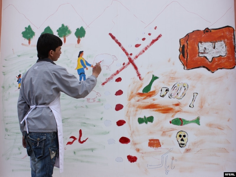 "نن چې موږ كوم پروګرام لرو تاسو ويني، چې زموږ ګران كوچنيان زموږ د دفتر په ديوالونو باندې يو شمېر رسمونه كاږلي دي، چې په دغو رسمونو كې د ماين په اړه د عامه پوهاوي په برخه كې روښانه پيغامونه دي.